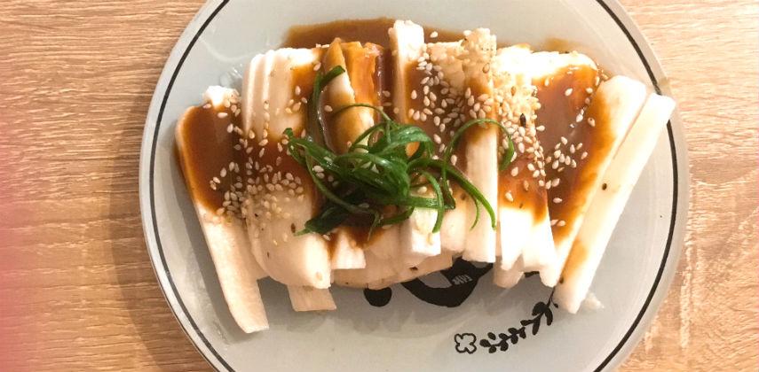 1.日本野生淮山洗淨削皮,切幼條 ( 處理時宜戴上手套以防痕癢 )