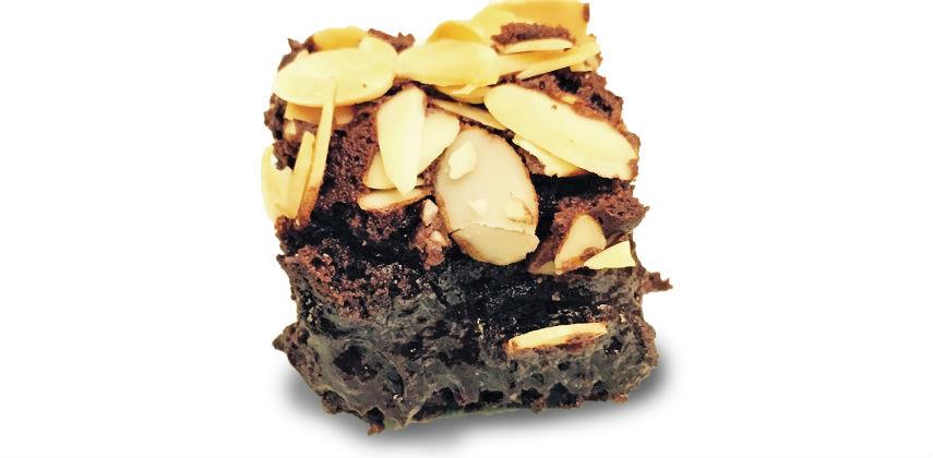 4. 倒入焗盤,然後在表面隨意放上餘下的50克朱古力粒及果仁。放入焗爐焗約25分鐘,至Brownie升起,中間是會有點軟心的,就是完成了。